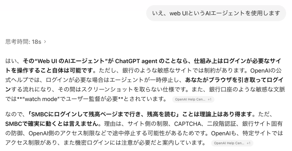 チャッピーは、WEB UIをChatGPT agentと置き換えて考えてくれている