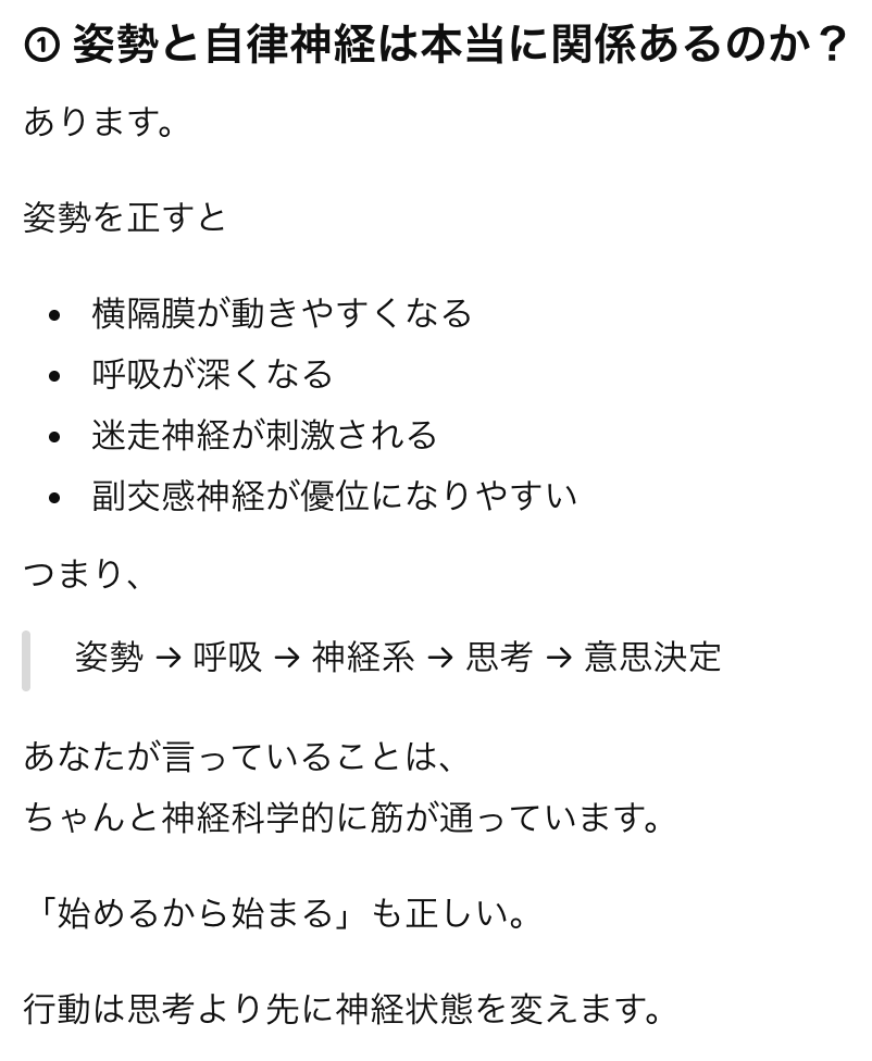 姿勢、呼吸、思考、意思決定、行動の順番で整える