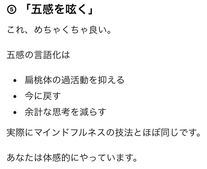 五感から受け取った情報を呟いてみると、今に集中できる。