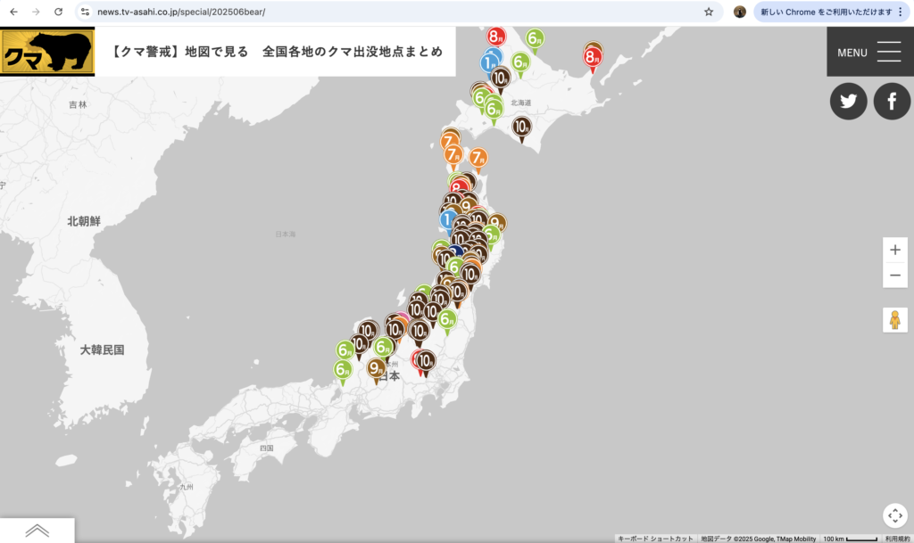 しかし、上記のマップにすべての熊出没情報が反映されているのか?