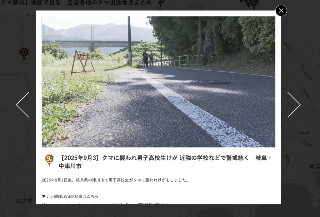 中津川では先ほど書いたように男子高校生が熊に襲われ怪我をする事態が発生した。