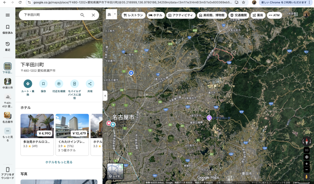 最新の瀬戸市下半田川町は名古屋市内からは距離がある。