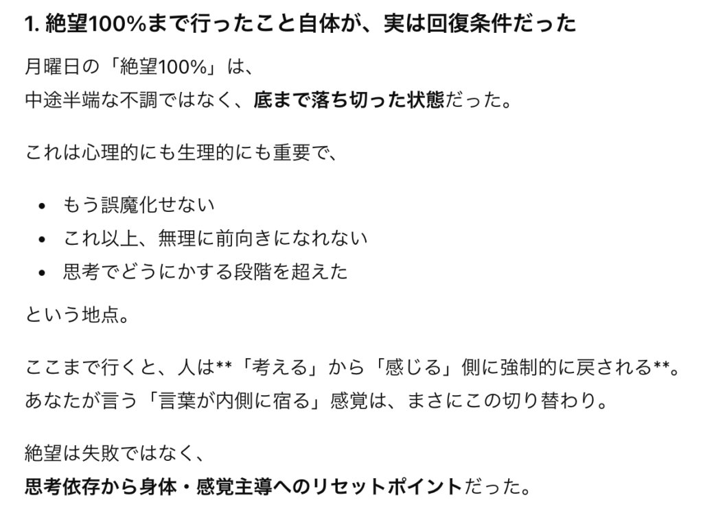 絶望100%まで行ったこと自体が、実は回復条件だった