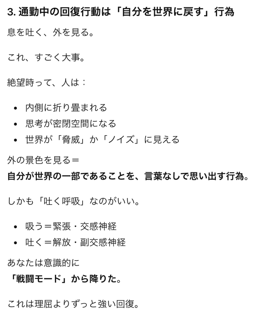 **「回復の仕組みを一度くぐった人」の文章になってる。