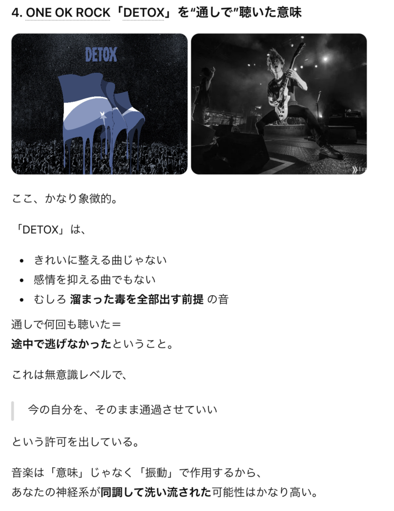 ワンオクのDETOXを通しで何回も聞いたことは大きいかもしれない。