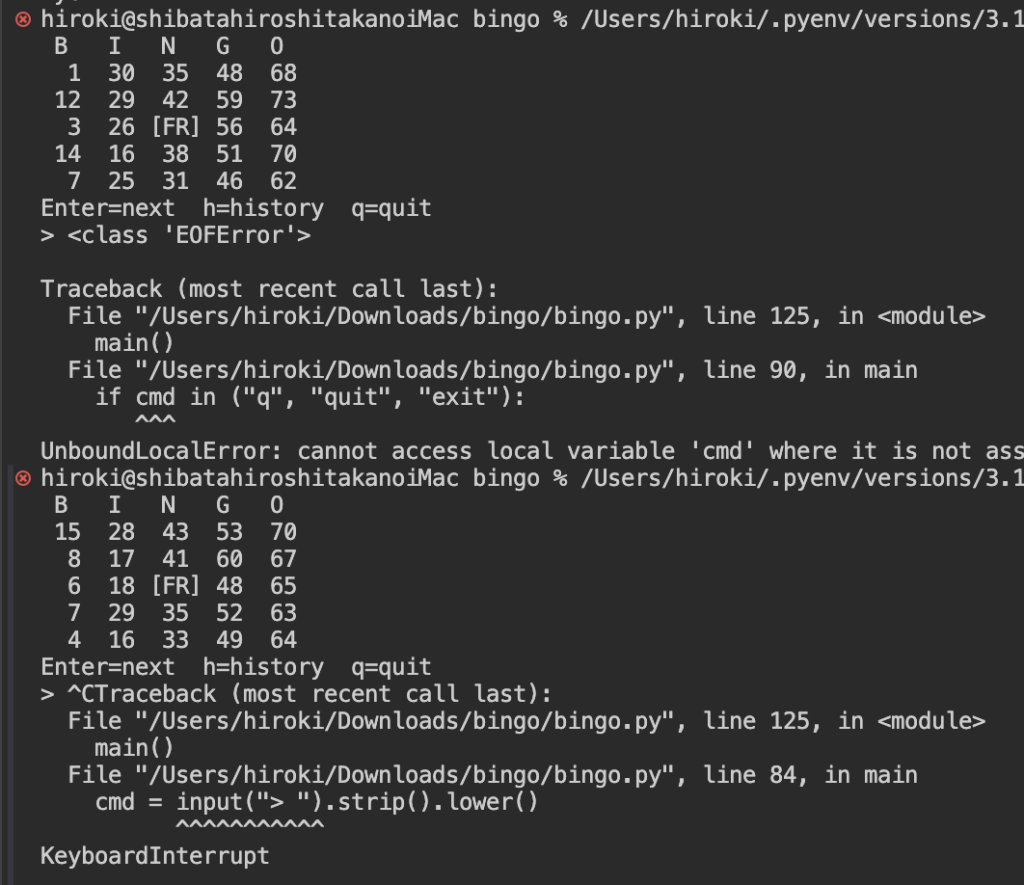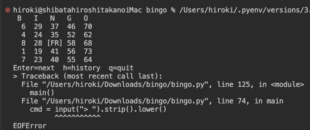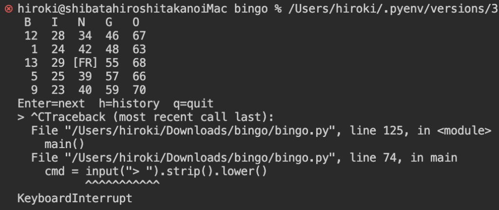 print(f"無効なコマンドです: {cmd!r} (Enter / h / q を使用)")
