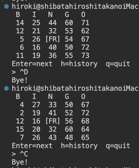 Ctrl + D、Ctrl + Cのどちらを押してもBye!と優雅に表示されるようになった。