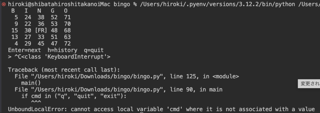 Ctrl + Cを押すと、KeyboadInterruptエラーが発生する。