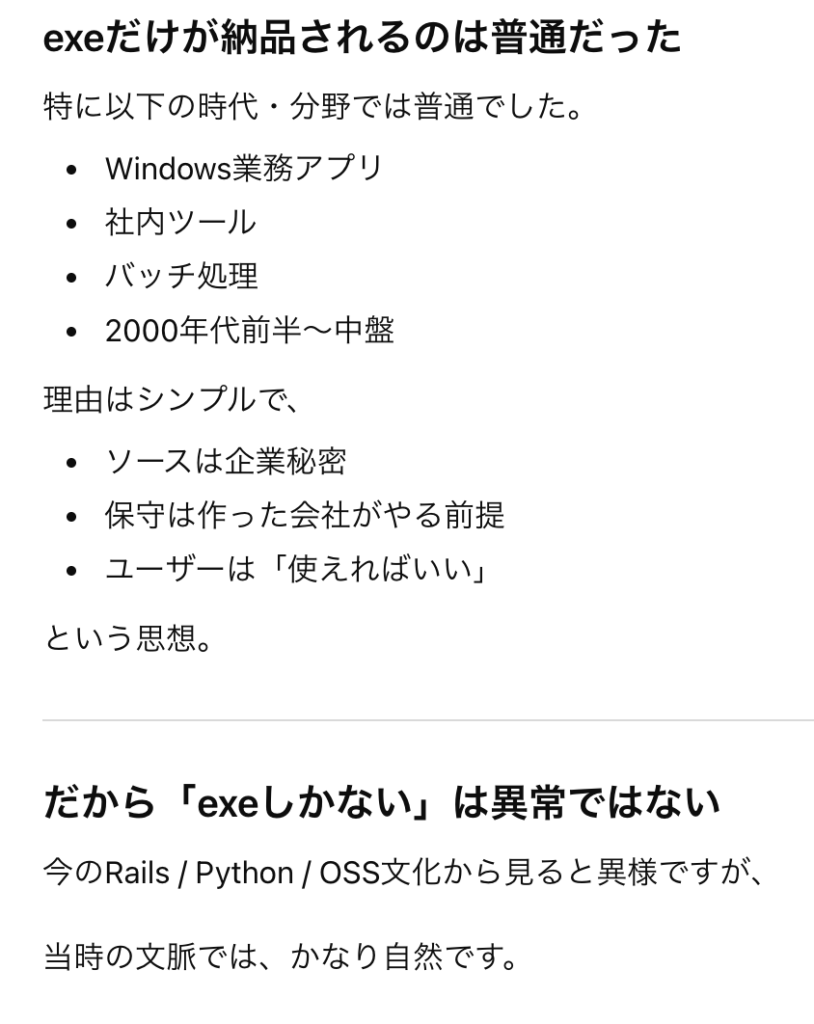 今の業務で取り扱っているシステムが「exeファイル」をたくさん使っている。