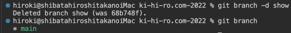 git branch -d showで、showブランチを削除することができた。