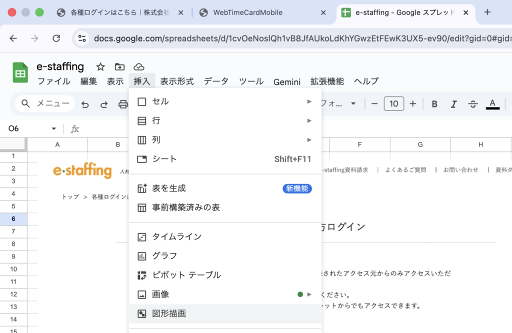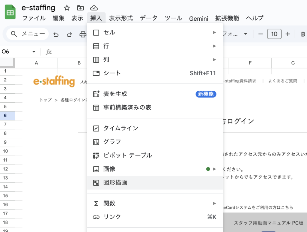 挿入→描画→新規と手順の一つ目に書いてあるが、描画が存在しない。