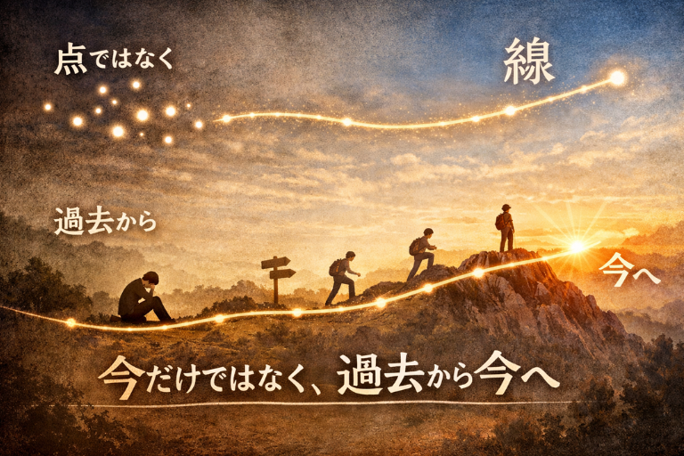 私が業務のドキュメントで感じた「過去から今の大きな文脈」は、この哲学的構造とかなり一致している。