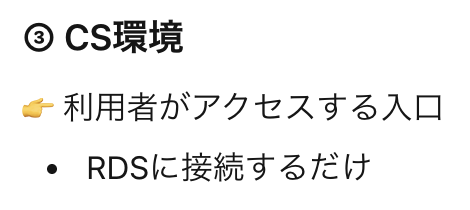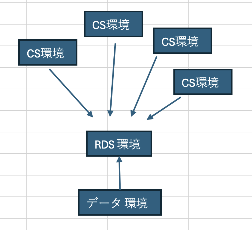 データベースはデータ環境に一元化することで、RDS環境にCS接続する人たちは、権限の範囲内でアプリを操作して変更を加えることができる