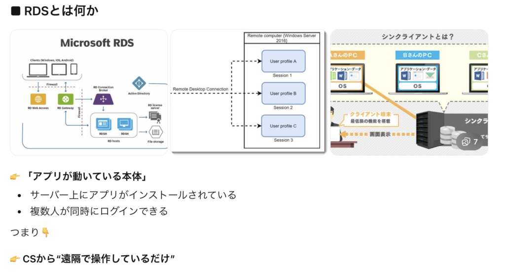 RDS(リモートデスクトップサーバー)環境と、CS(クライアントサーバー)環境