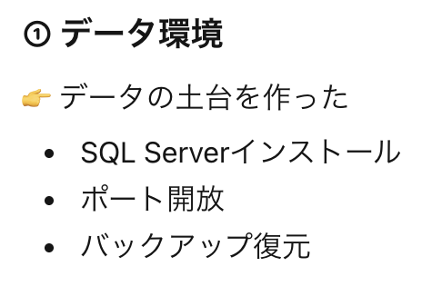 お客さんが用意していたSQLServerのインストールとこちらで用意したアプリのインストールを行った