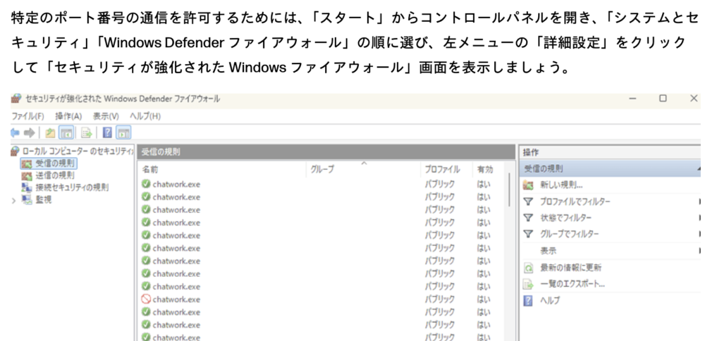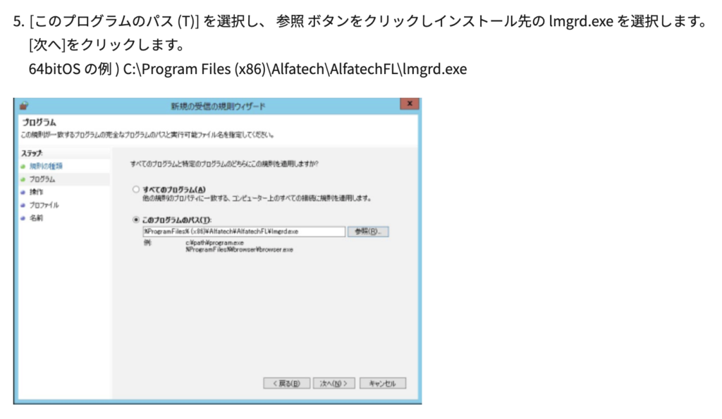行なった場所(windows OS)は、ファイアウォールを設定する場所
